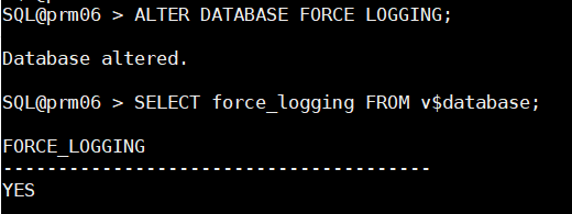 SQL> ALTER DATABASE FORCE LOGGING;