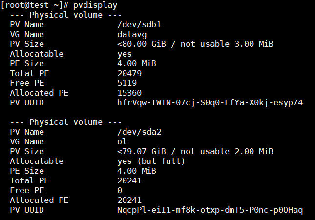 pvdisplay ------- 생성한 pv 확인