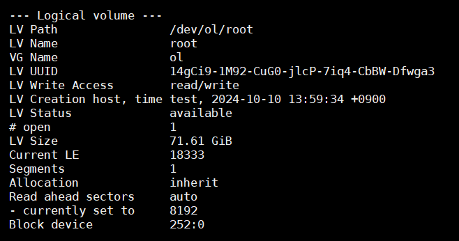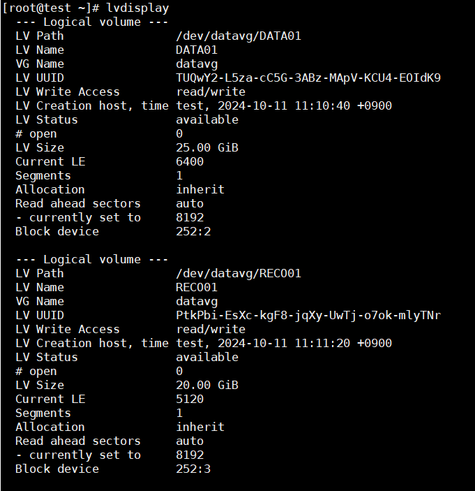 # lvscan ----- 시스템에 있는 모든 논리 볼륨을 찾고 이를 나열합니다.