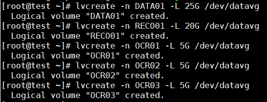 lvcreate -n OCR01 -L 5G /dev/datavg