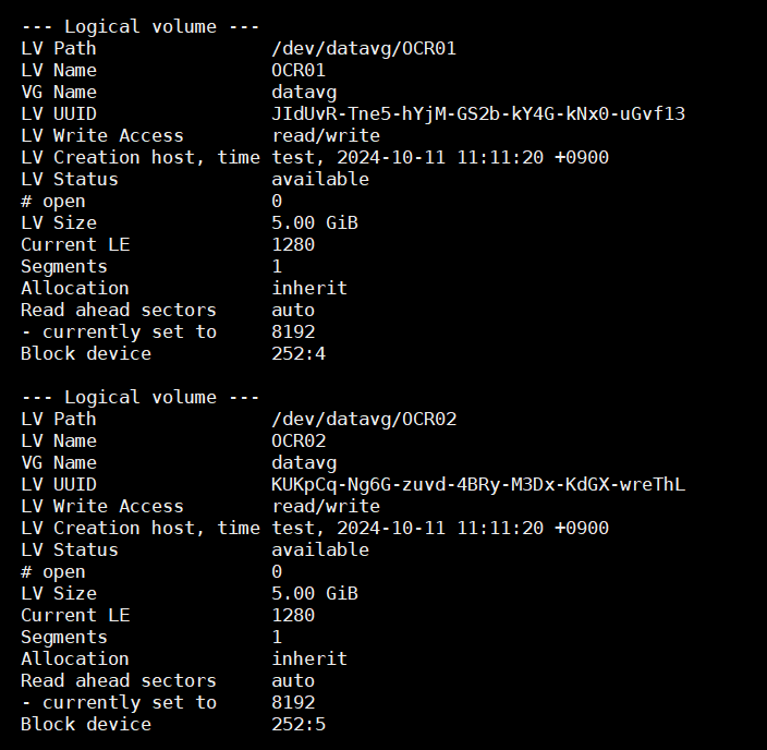 lvcreate -n OCR02 -L 5G /dev/datavg
