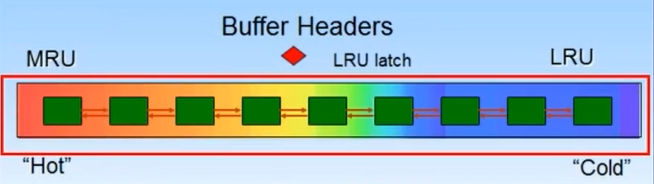 오라클은 내부적으로 알고리즘을 사용하여 LRU 리스트를 유지한다. 이 리스트는 LRU 체인에 의해 관리되며, 체인의 각 노드는 메모리 내의 정확한 데이터 블록을 가리킨다.