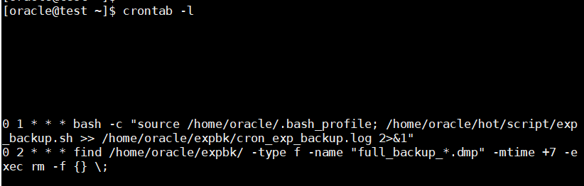 0 1 * * * bash -c "source /home/oracle/.bash_profile; /home/oracle/hot/script/exp_backup.sh >> /home/oracle/expbk/cron_exp_backup.log 2>&1"