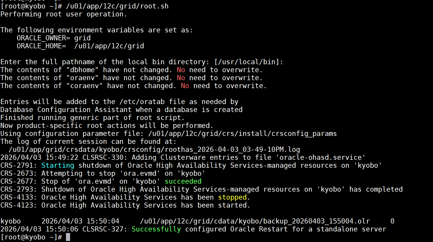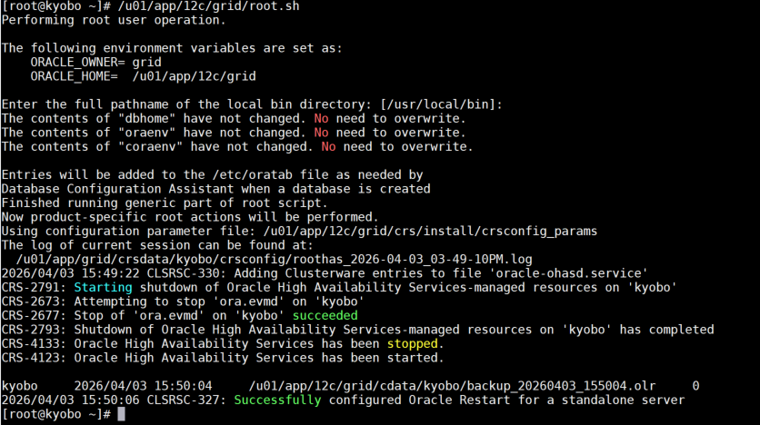 2026/04/03 16:07:39 CLSRSC-327: Successfully configured Oracle Restart for a standalone server