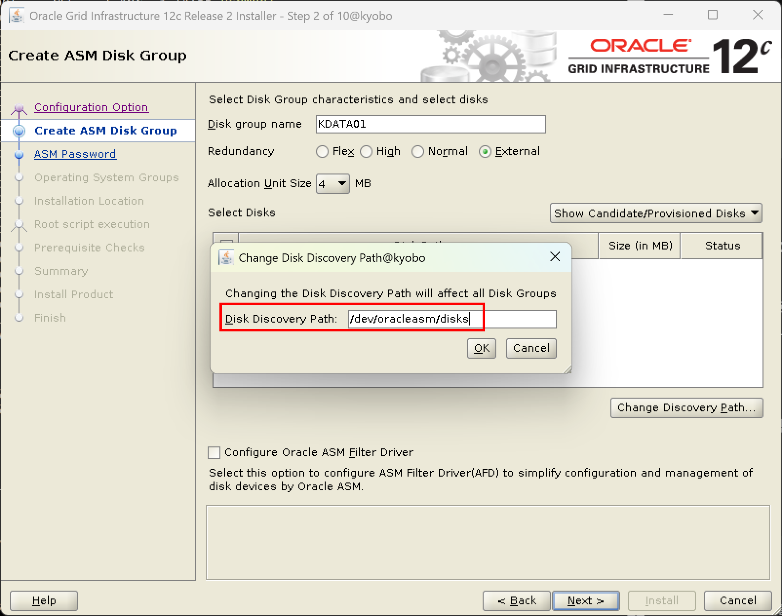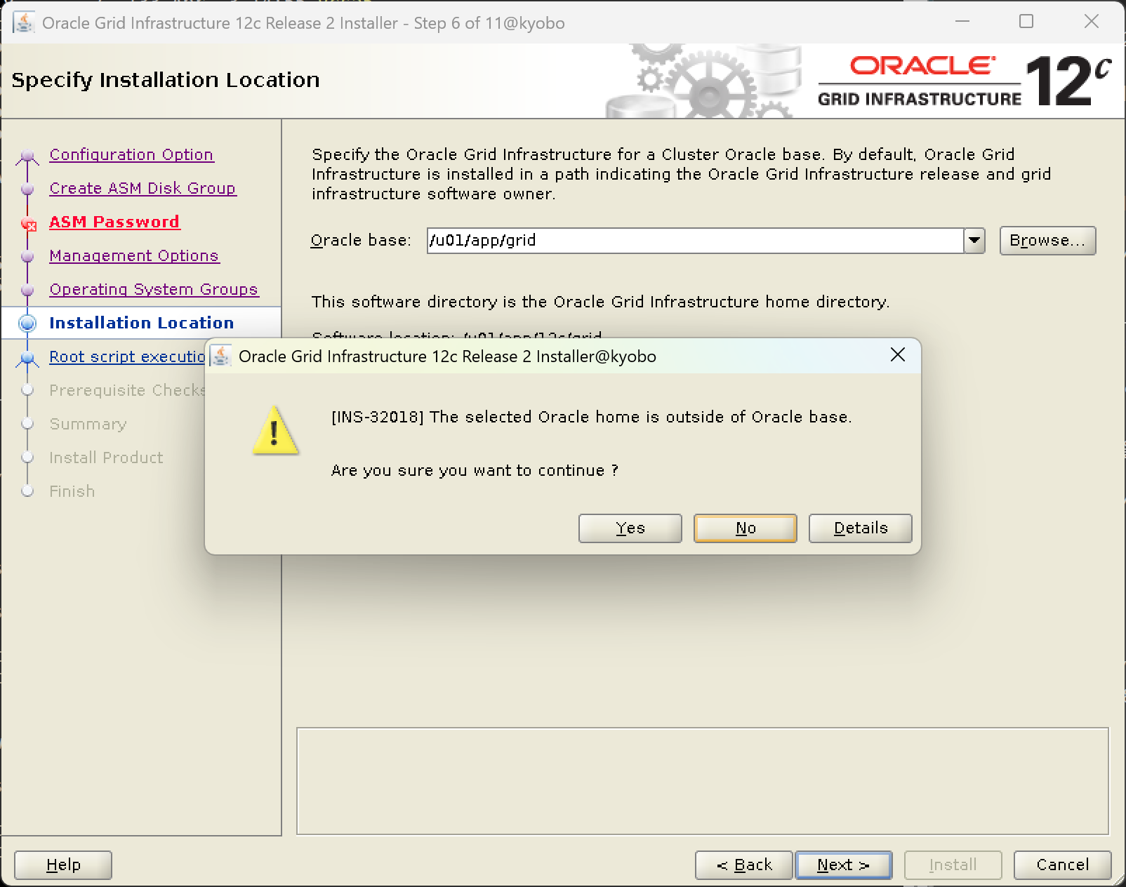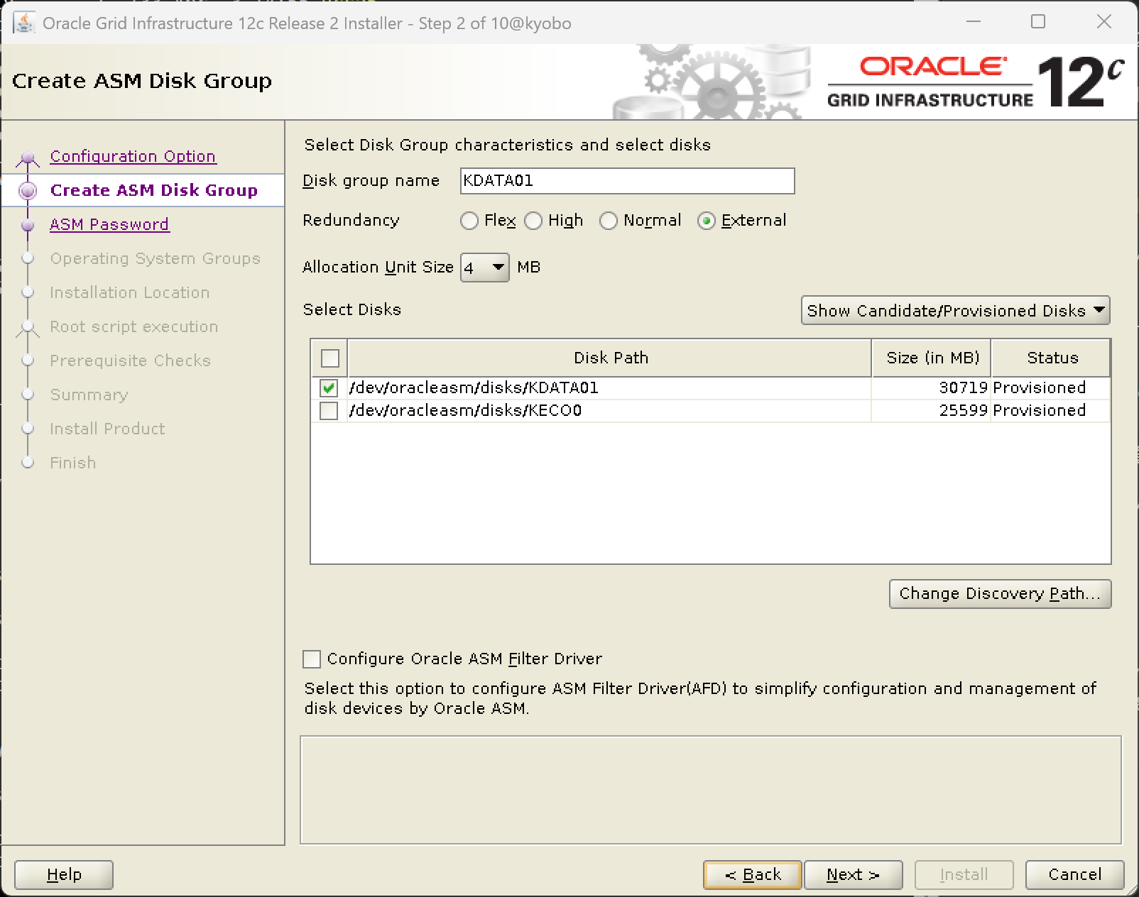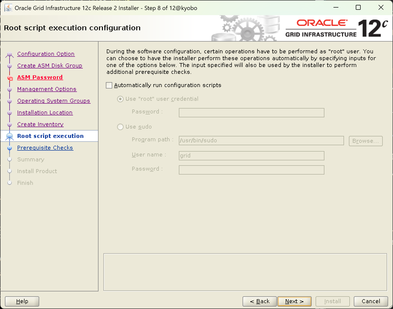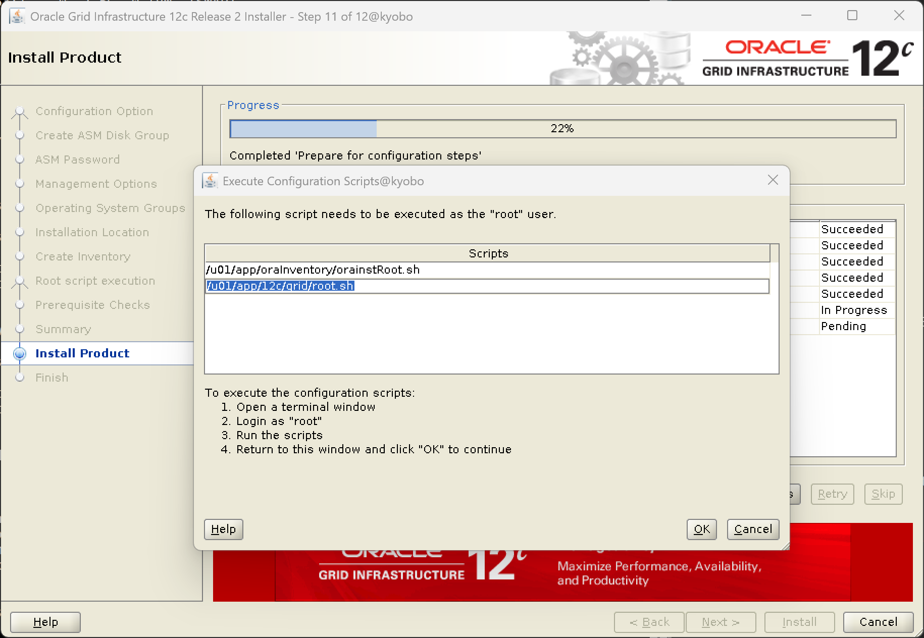 [root@kyobo ~]# /u01/app/12c/grid/root.sh