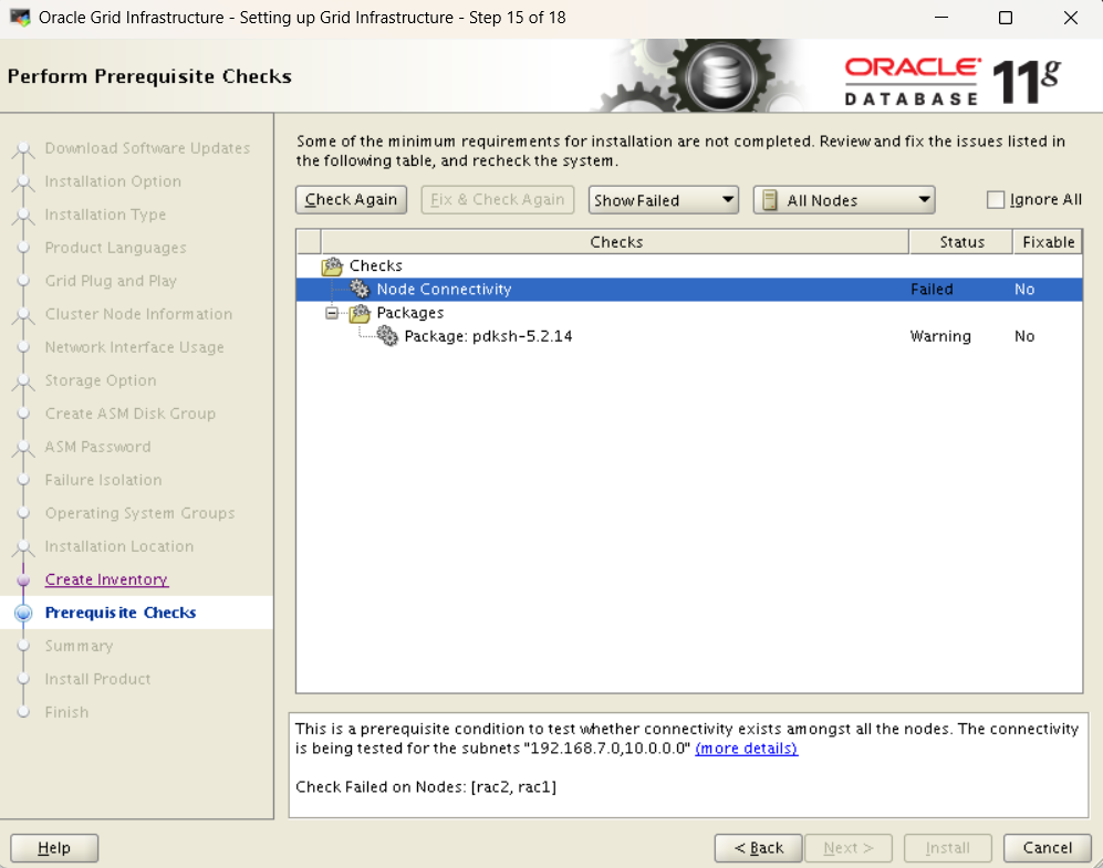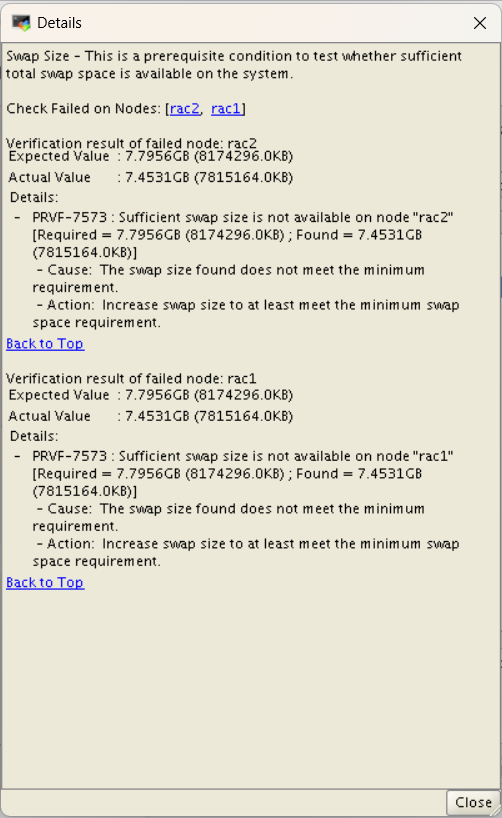 현재 시스템의 swap 크기가 Oracle 설치 요구 사항을 충족하지 못함