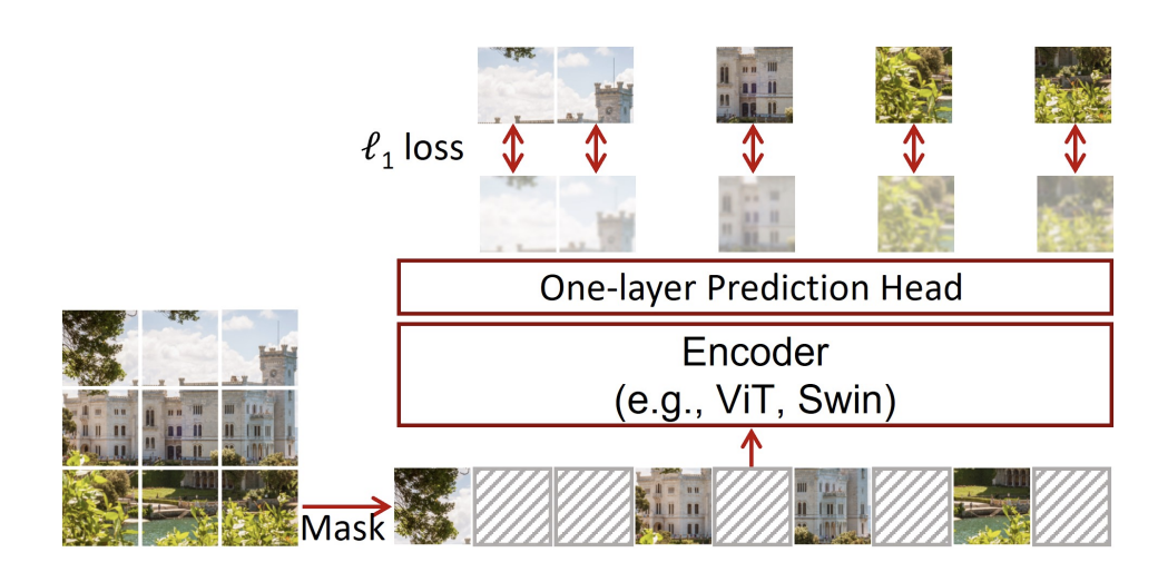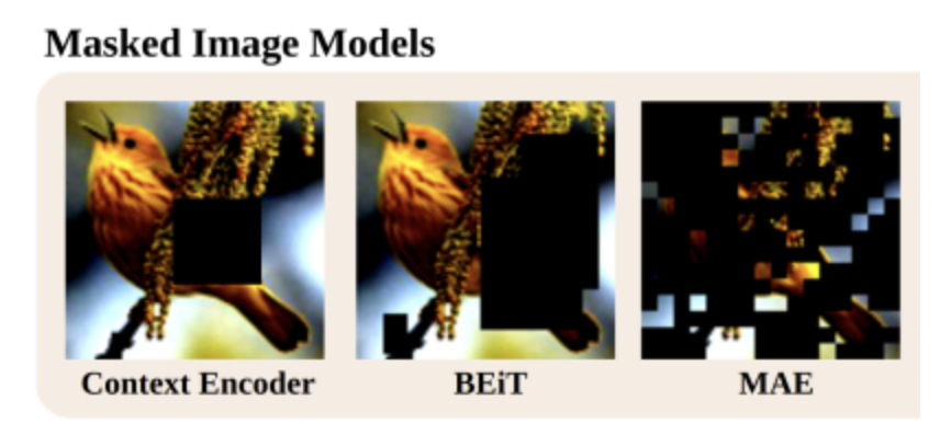 정보의 일부를 masking하여 masking 되지 않은 부분을 통해 masking 된 부분을 예측한다. Autoregressive generation은 앞 정보만 보고 예측하는 반면, 이는 앞, 뒤 정보를 보고 예측한다. 또한 random masking으로 masking의 범위가 계속 변화하기 때문에 다양한 scale이나 size에 대한 학습이 가능하다.