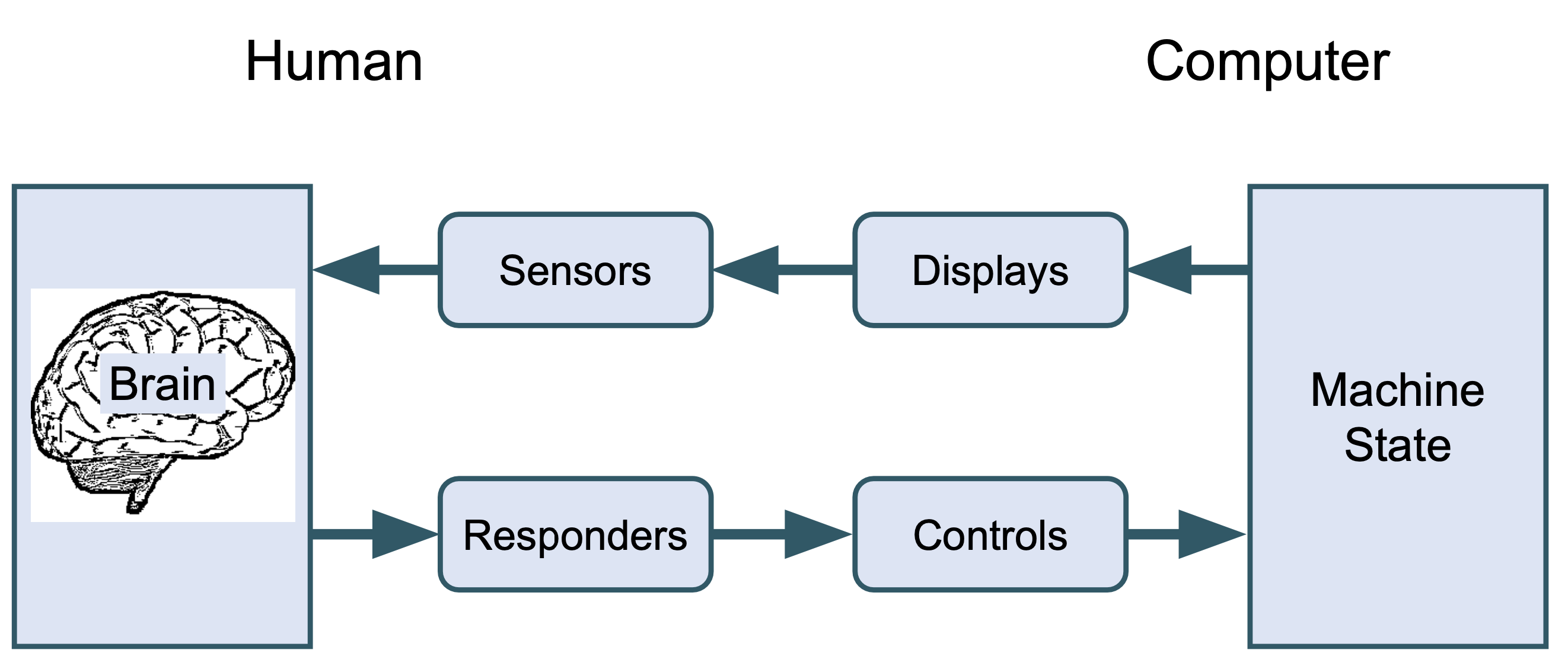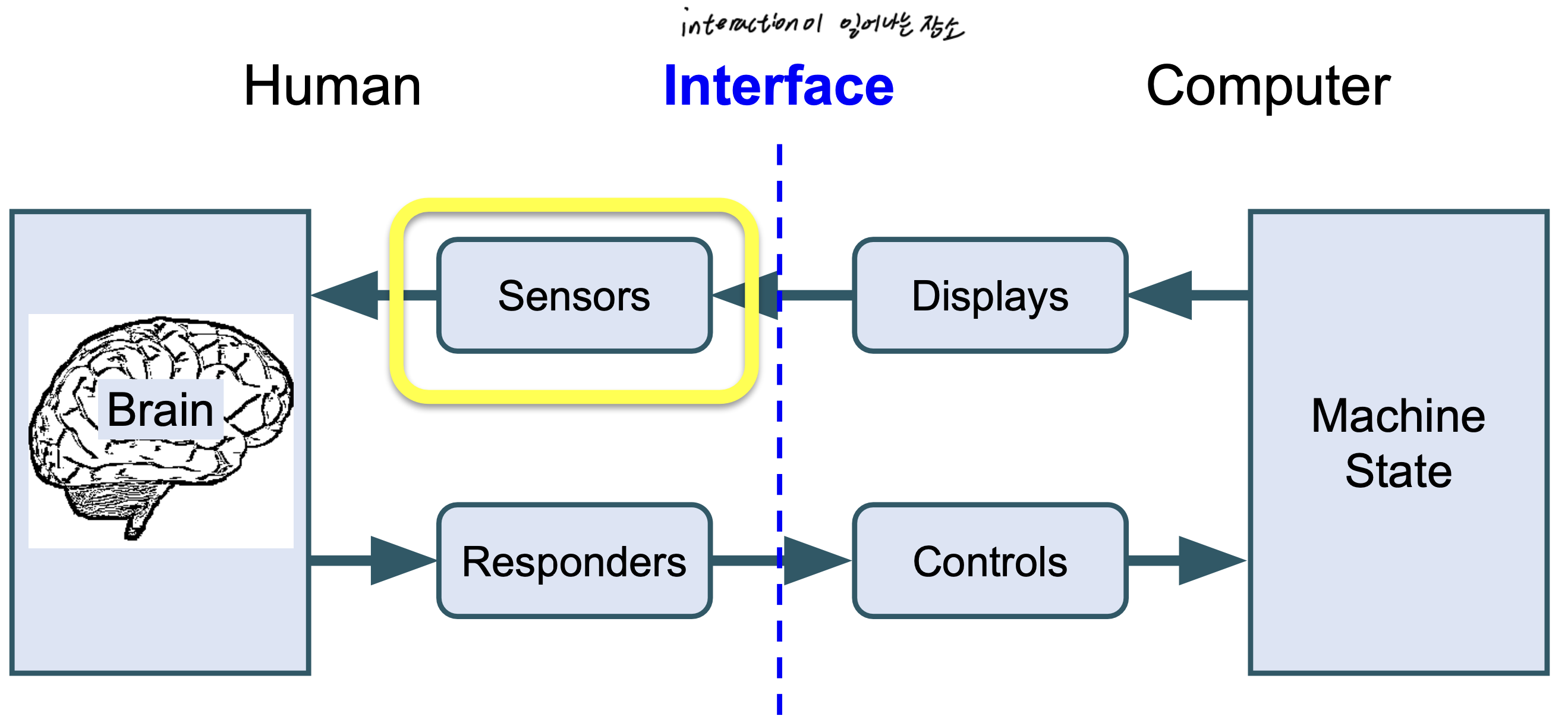 - human inputs(Sensors)와 human outputs(responders)가 brain으로 인해 연결된다. (정보를 받아들이고 보낸다.)