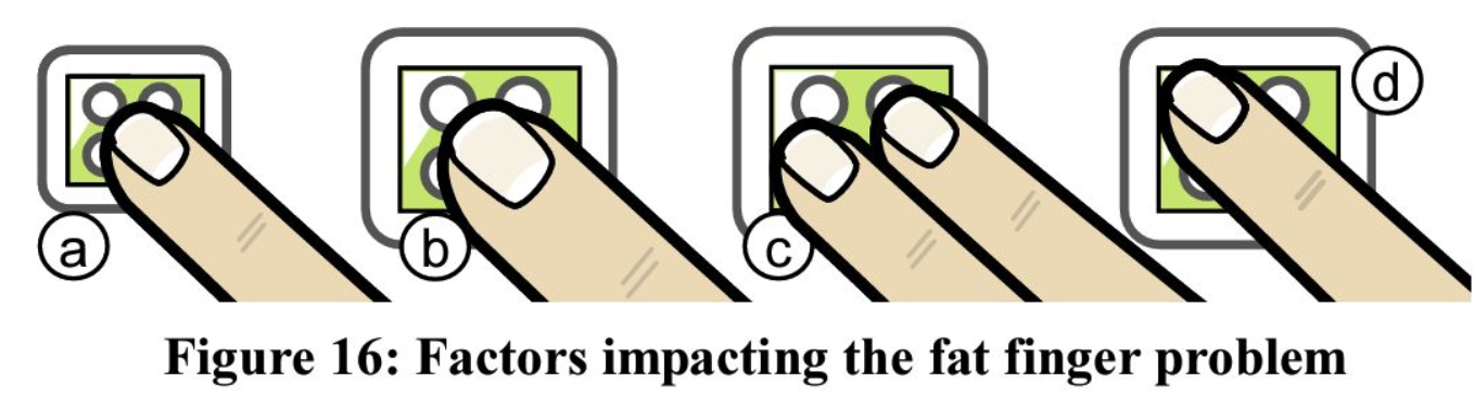 다음과 같이 어려 오류가 생길 수 있다. 이는 사람의 손의 두께가 다르거나 디스플레이의 크기가 다르거나, 누르는 방식이 다르는 등, 여러 factor가 존재하기 때문에 나타나는 문제가 된다.