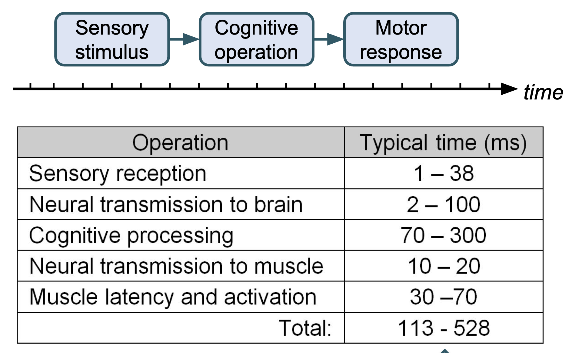 - human performance의 주요 요소 중 하나는 reaction time이다.