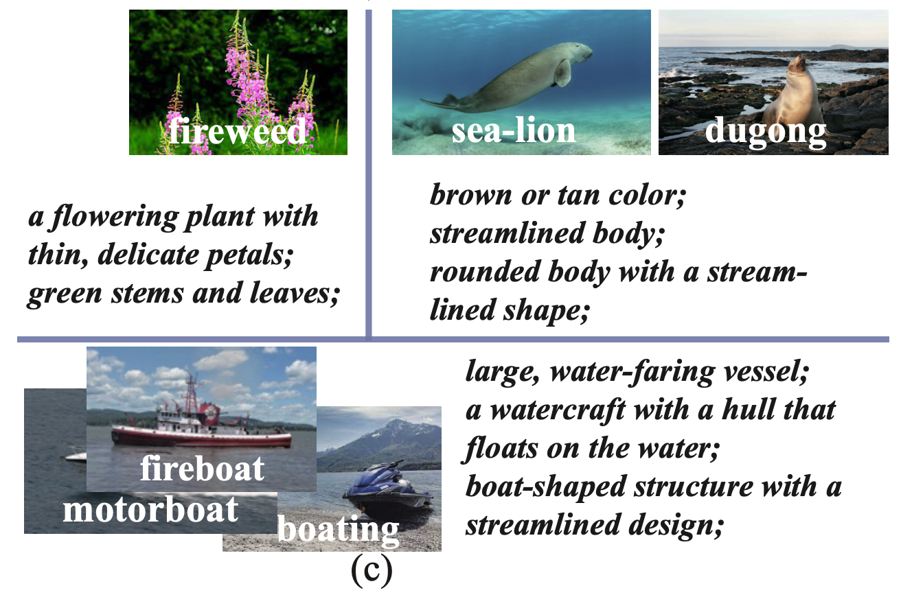 또한, 추상적인 category 이름과 정의를 기반으로 한 개념 표현은 시각적 특징을 설명하지 못한다.