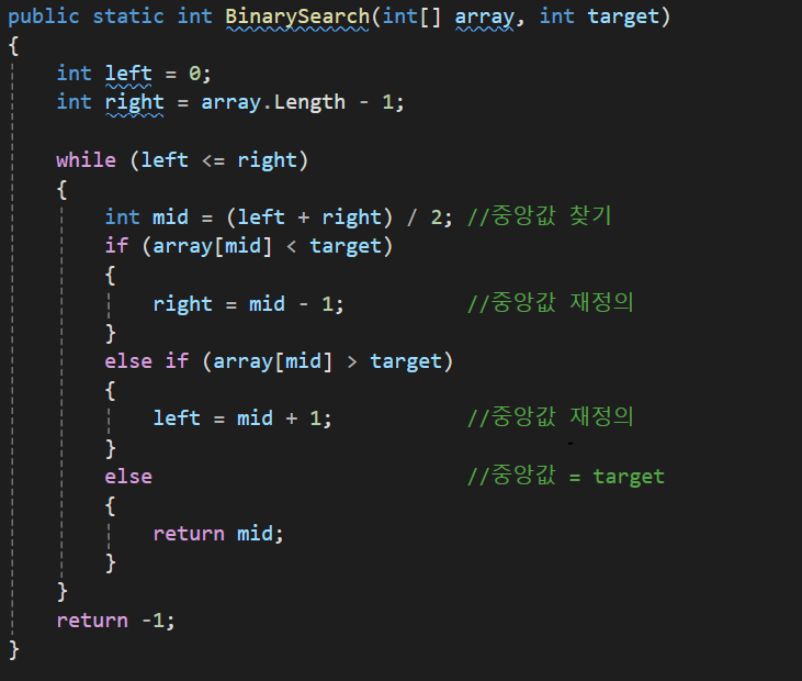 정렬이 된 자료구조를 2분할을 통해 데이터를 탐색하는 방법