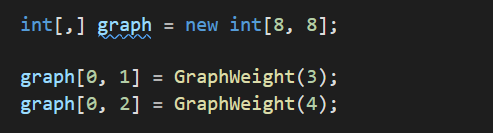가중치를 설정해주고 graph의 크기를 지정하여 노드와 간선을 연결 후 가중치를 부여한는 형식으로 작성 할 수 있다.