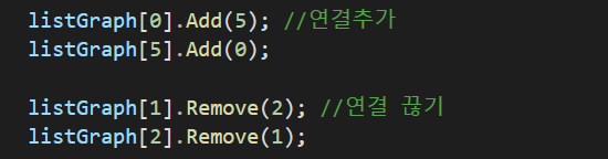 list형식으로 graph를 만들어주는 방법으로 list의 add, remove가 사용이 된다.