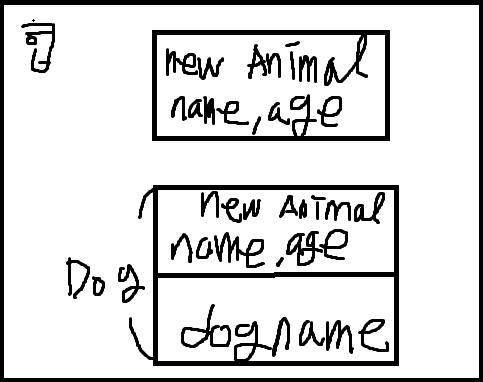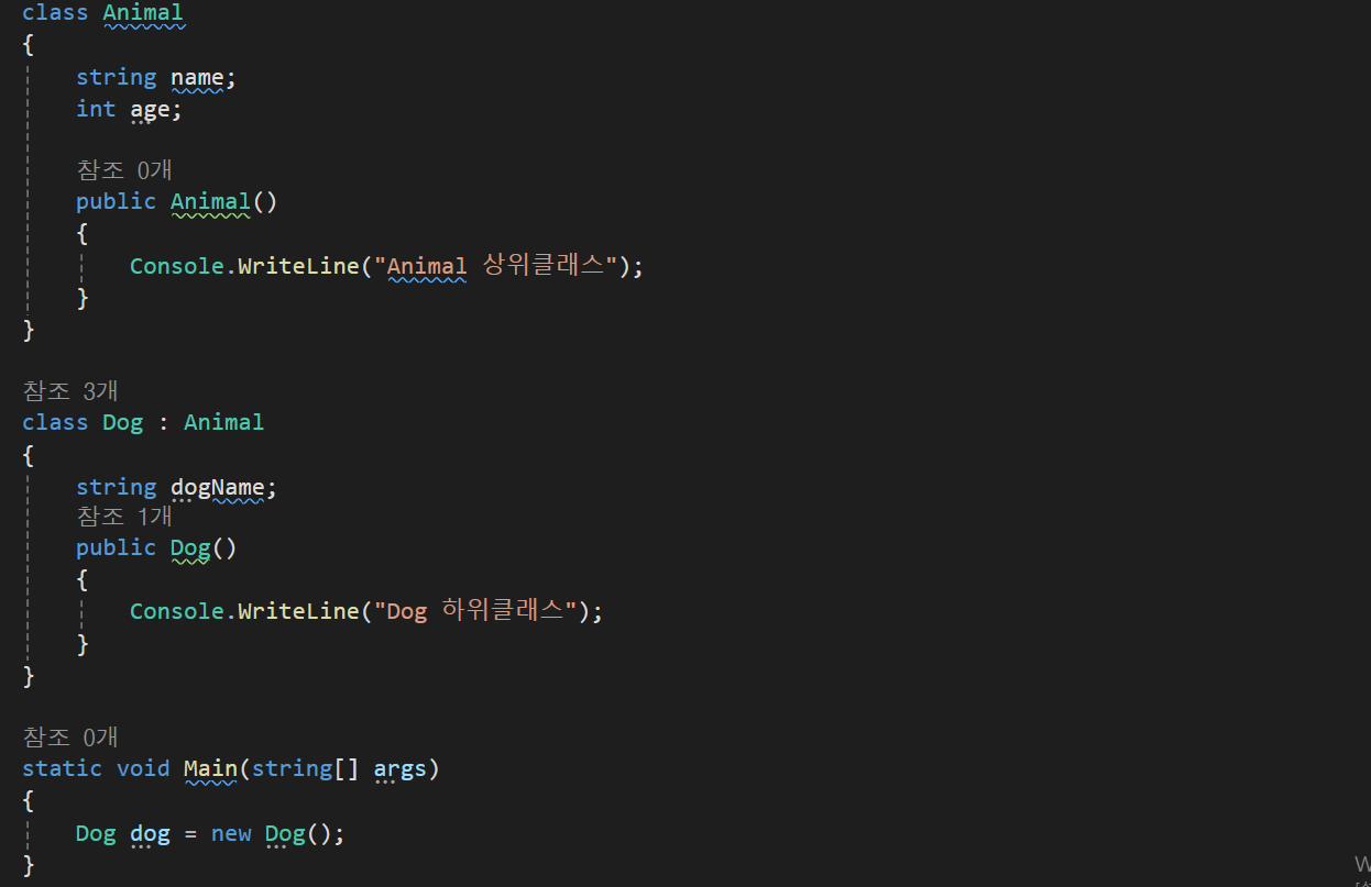 이러한 형식으로 Dog클래스에는 상위개념과 하위개념을 모두 가져오게된다.