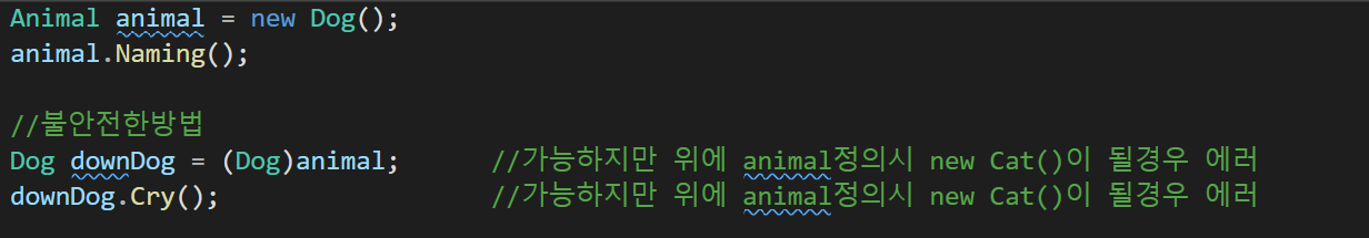 다운캐스팅 : 하위클래스가 자신만의 기능을 사용하고 싶을경우 사용