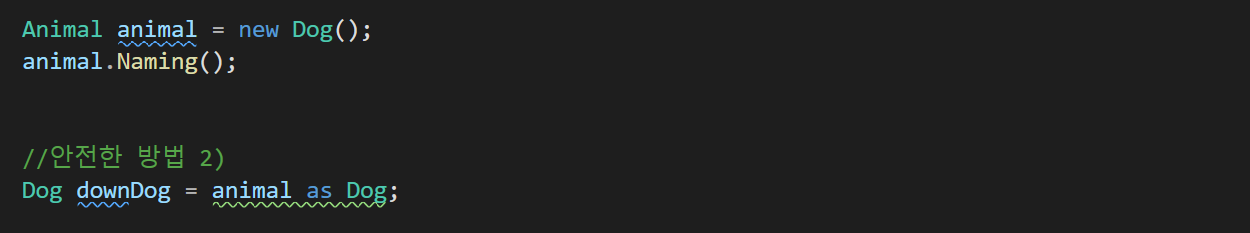 as : 형변환이 가능하면 바꿔서 주고 아니면 null (TryParse구조랑 비슷함)