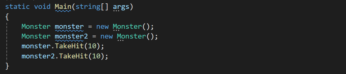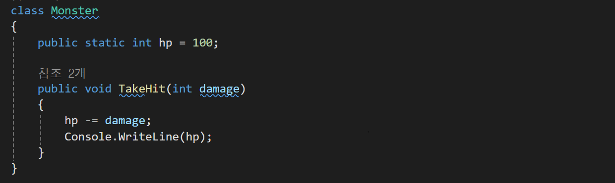 결과와같이 data메모리에 hp 원본에 접근하여 각각의 monster, monster2의 값에 영향을 주는게 아니라 하나의 hp에 값에 영향을 주는것을 볼 수 있다.