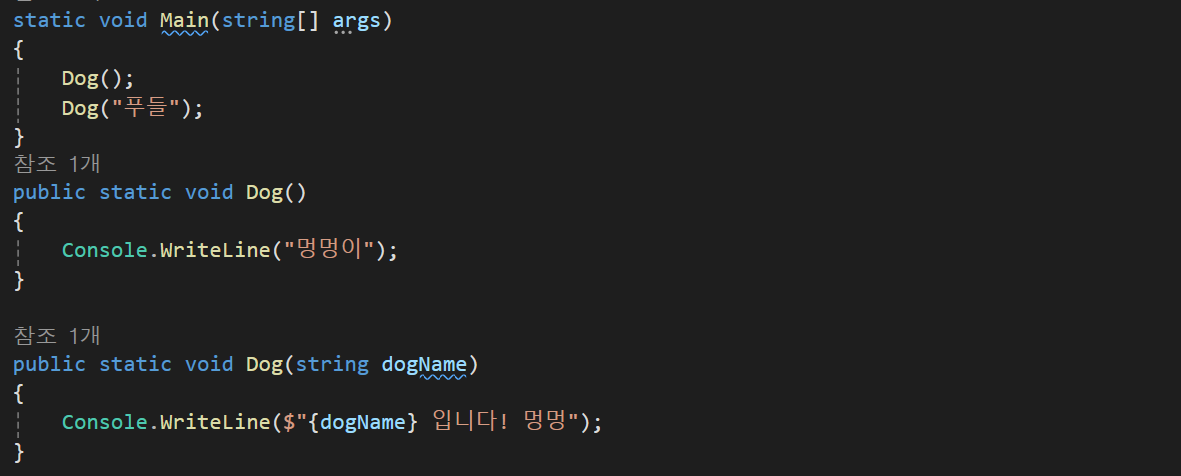오버로딩 : 변수와 함수는 이름을 하나만 가질 수 있는것으로 아는데 함수의 경우 매개변수에 따라 구분하여 이름이 같게 사용할 수 있다.