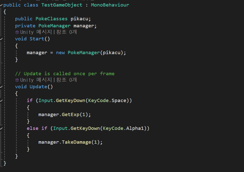 GetExp의 매개변수만큼 경험치가 증가하고 경험치가 PokeClasses.maxExp 즉 최대 경험치를 증가할때 레벨업 기능을 추가 해준다 이부분은 수정할 것이 많아 추후에 변경 할 예정이다.