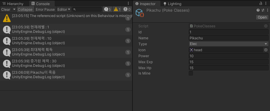 테스트를 진행하기 위해 new PokeManager를 통해 scriptableObject 객체를 넣고 실행 해보면