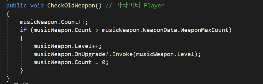 각각의 MusicWeapon에 대해 Count를 통해 이벤트를 실행시키는 함수이다.