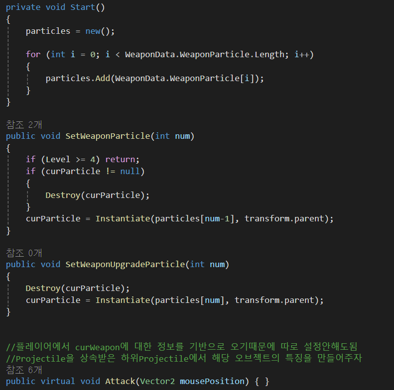 이후 Projectile을 상속받은 오브젝트는 이미지만 달라지고 특이한 두개의 무기 Projectile이 있는데 먼저
