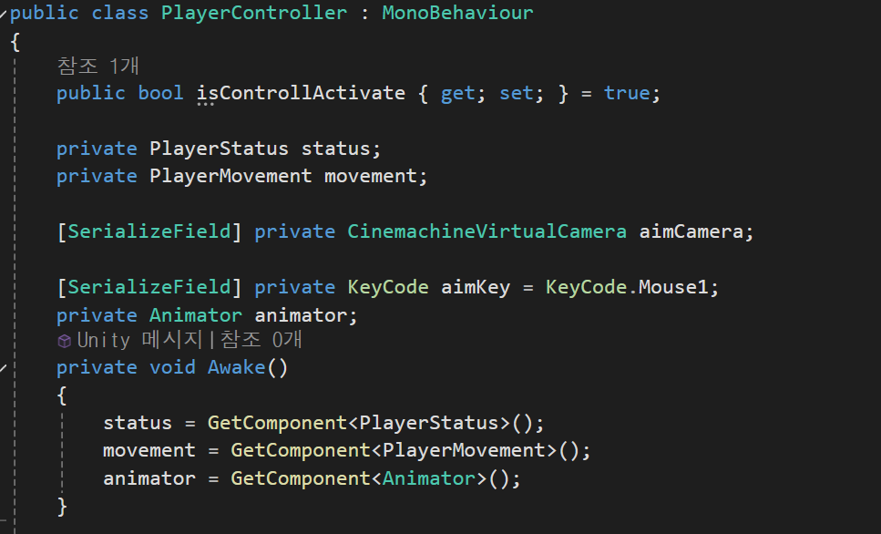 이전에 플레이어가 움직이면 안 될 bool 변수를 이곳에 넣었고, 두개의 함수를 HandlePlayerController에 넣어 해당 함수에서 실행하도록 하였다.