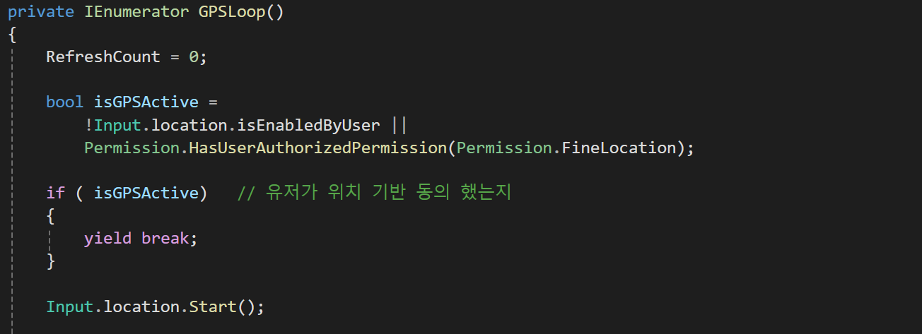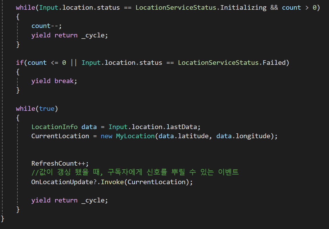 다음과같이 모두 통과 됐을 때 while문에 들어가서 위도와 경도의 값을 가져올 수 있다