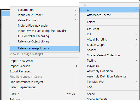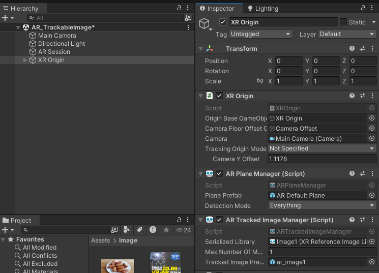 reference Image Library를 선택한 후 위와같이 원하는 프리팹을 드래그앤 드랍 해주면 해당 이미지가 카메라에 관찰 될 시 출력이 된다.(주의, 너무 단순한 이미지 안됨 - 포인트가 없는 이미지)