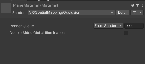 OcclusionManager를 지우고 AR Default Plane을 만들어준다(XR Origin) 그 후, Material에서 다음과 같이 설정을 해준다