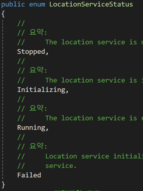 LocationServiceStatus에서 해당 status의 상태를 불러올 수 있는데 자세히 살펴보자면