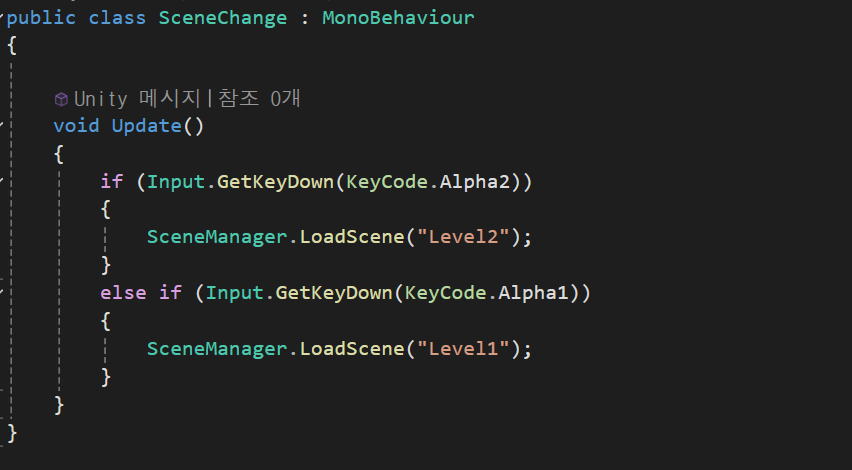 2번을 누를시 Level2, 1번은 Level1씬으로 가도록 설정