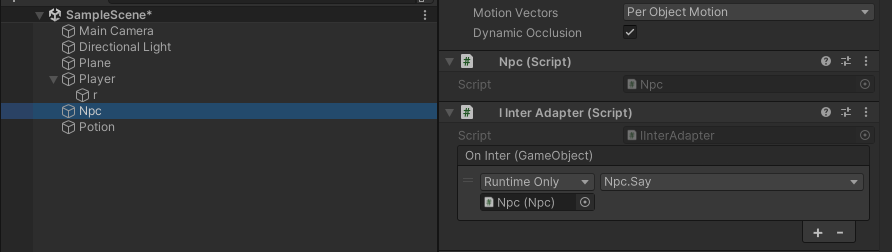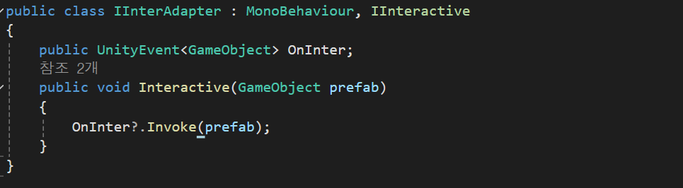 게임 오브젝트를 만들떄 인터페이스를 사용하다보면 비슷한 기능을 하지만 적용하지 못하는 비슷한 인터페이스 함수들이 존재한다 클래스 Player, Npc, Item 로 예를들어 보자면 Player - Npc 대화, Plaer - Item 사용 기능으로 상호작용 한다면