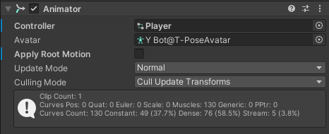 Animator : Apply Root Motion의경우 애니메이션에 의해 위치가 변경이 될지 유무이다. 보통은 비활성화를 한다.