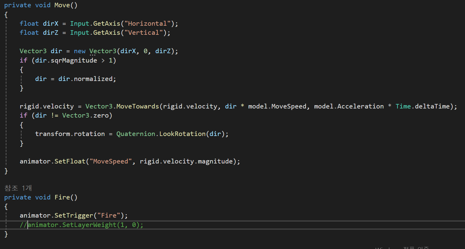 가중치를 MoveSpeed를 통해 플레이어의 속도에 따라 캐릭터의 속도가 달라지게 설정하였다.