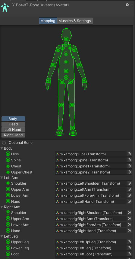 Source : Y bot T pose Avatar (다운받았던 휴머노이드 아바타 적용)