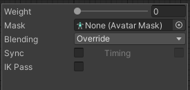 Animator.SetLayerWeight(1,0); 으로 해당 Layer의 가중치를 0으로 설정해준다.