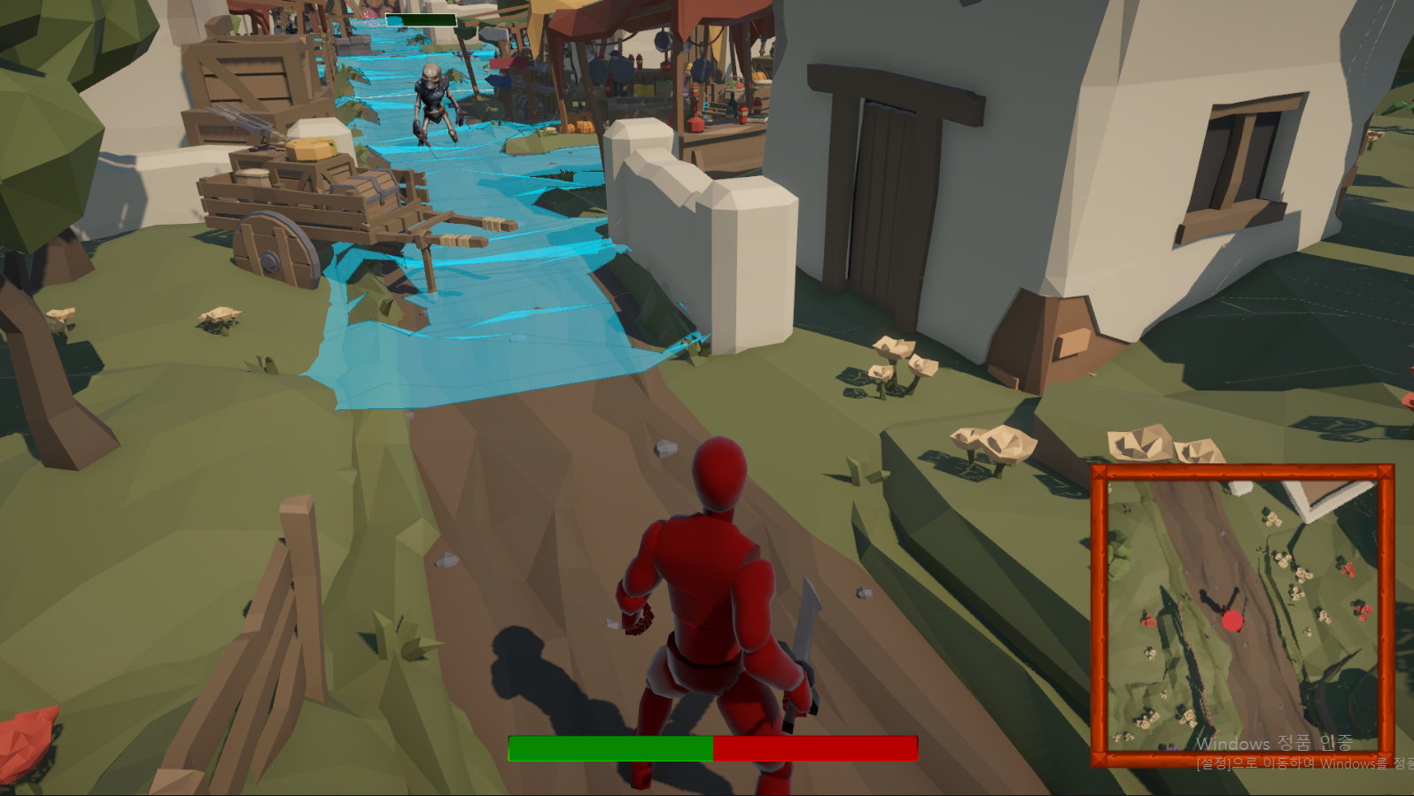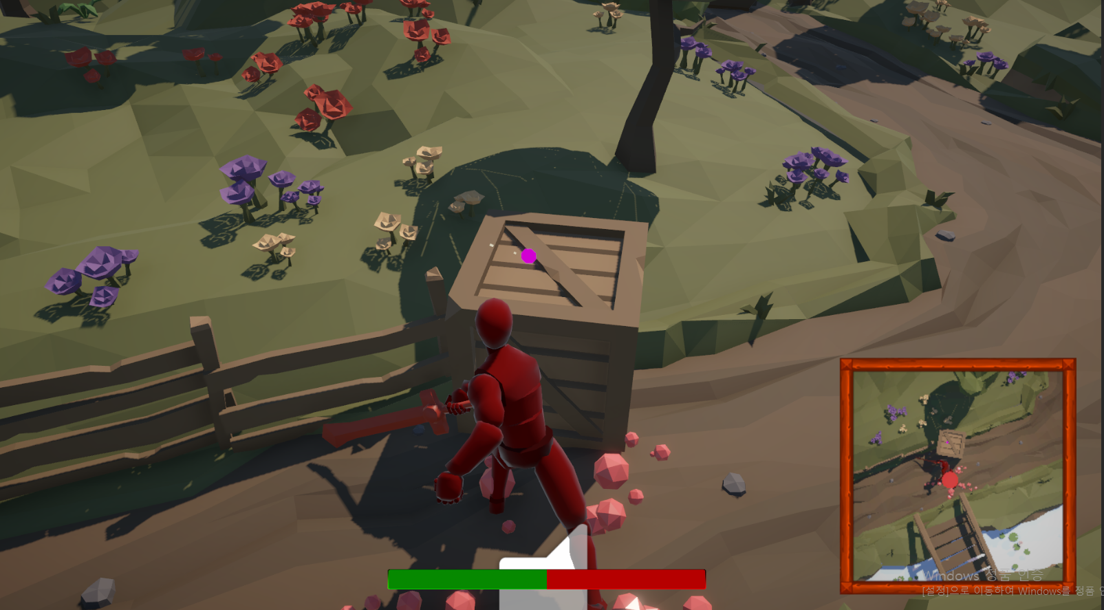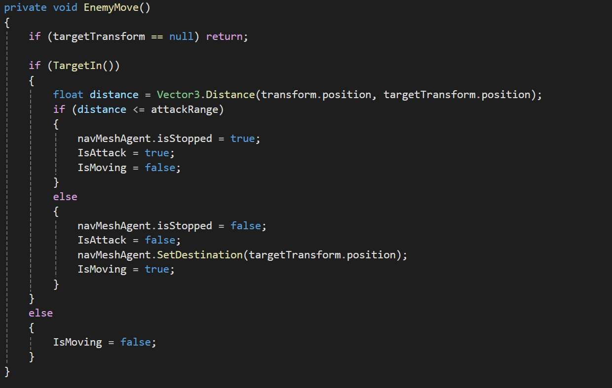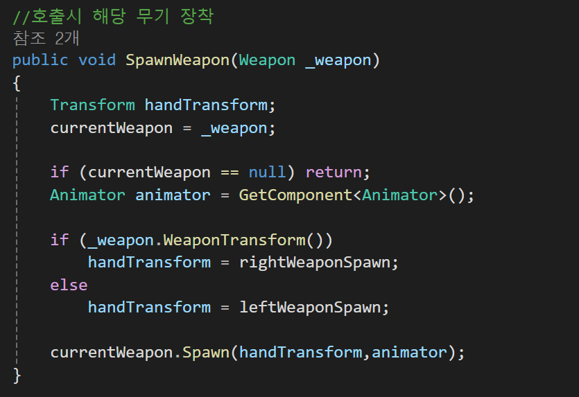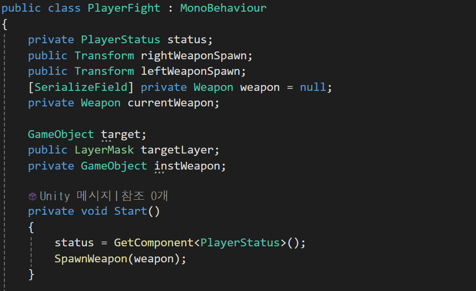 플레이어와 비슷하게 애니메이션 이벤트를 사용해서 공격한 내적을 구해 범위를 구성하고 IDamageable을 통해 Takedamage를 구성