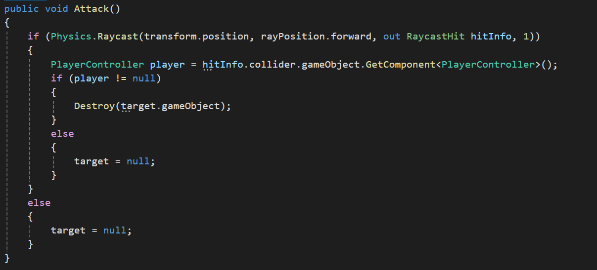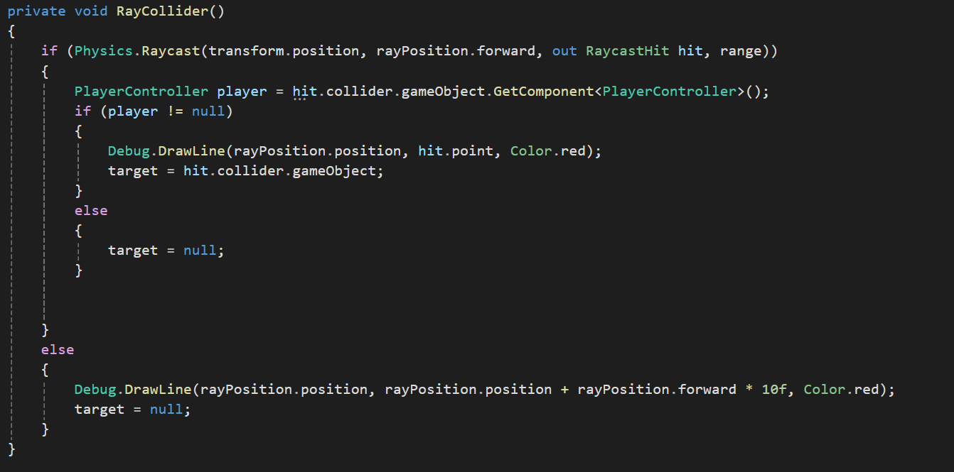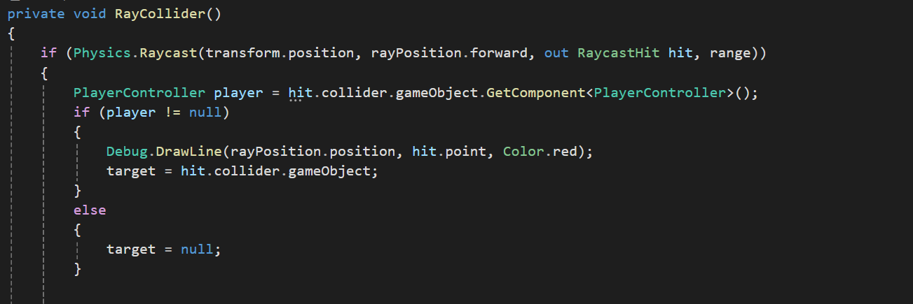 RayCastHit정보를 player에 저장하고 그 저장한 player에 PlayerController 컴퍼넌트가 존재한다면 true를 반환하도록 if문에 적용할 수 있다.