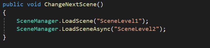 두개 다 씬을 호출하는 역할을 하지만 LoadScene은 씬을 호출할 때 다른 일을 진행 할 수 없다. 반면에 LoadSceneAsync의 경우 비동기적인 씬호출로 일이 진행되는동안 다른 작업을 허용하게 하도록한다 예를들어 로딩 화면을 통해 자연스러운 씬전환을 가능하도록 해준다.