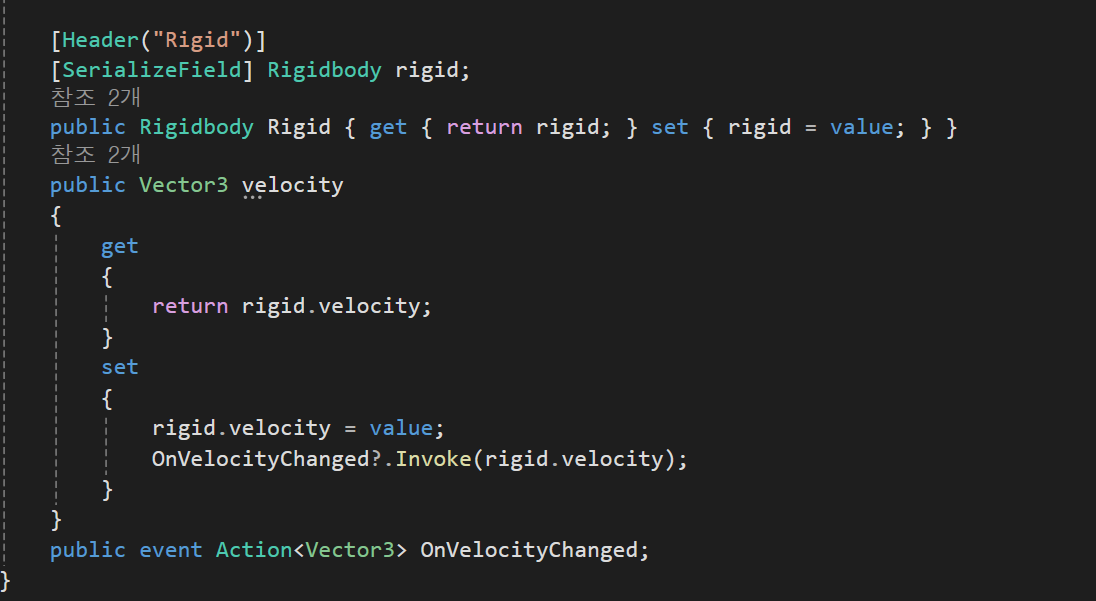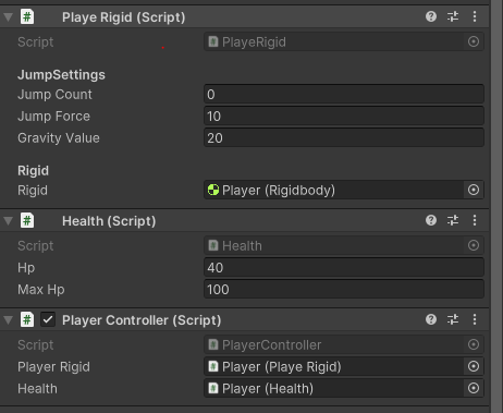 Model : Player Health,rigid의 변수와 set을 통해 이벤트함수 호출
