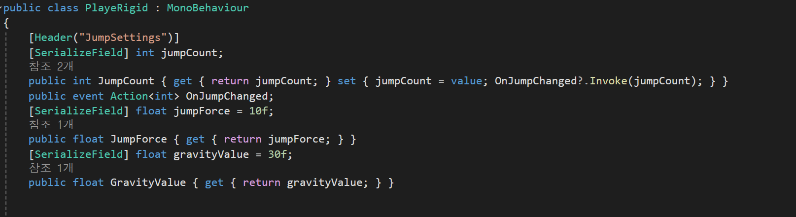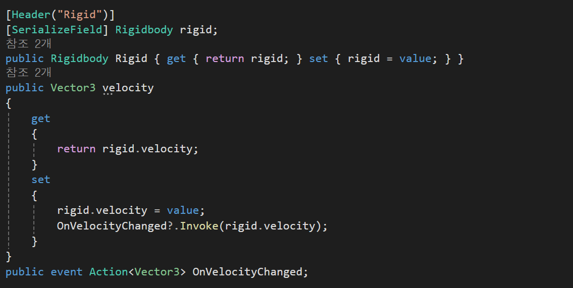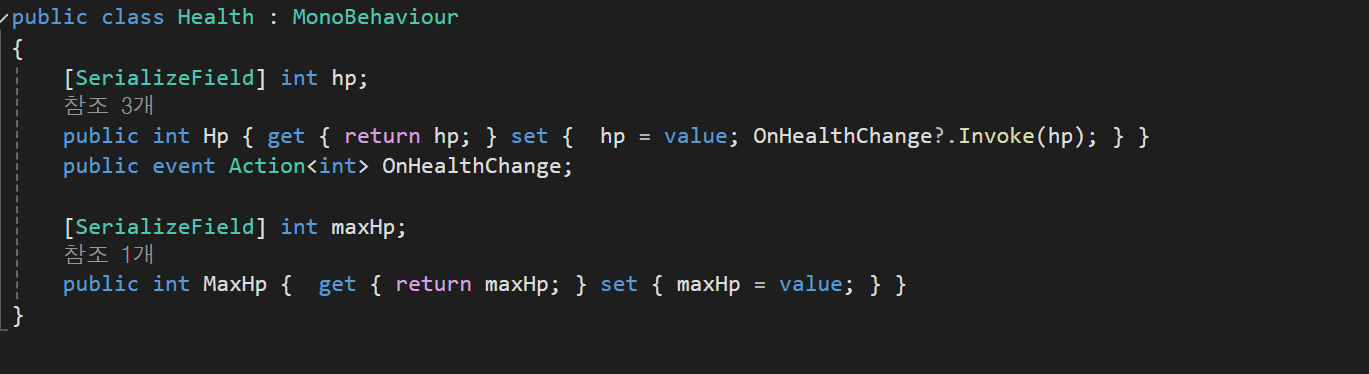 Model : Health, PlayerRigid를 사용해서 변수와 set에 변수가 변경 될 때마다 event를 생성하도록 구현