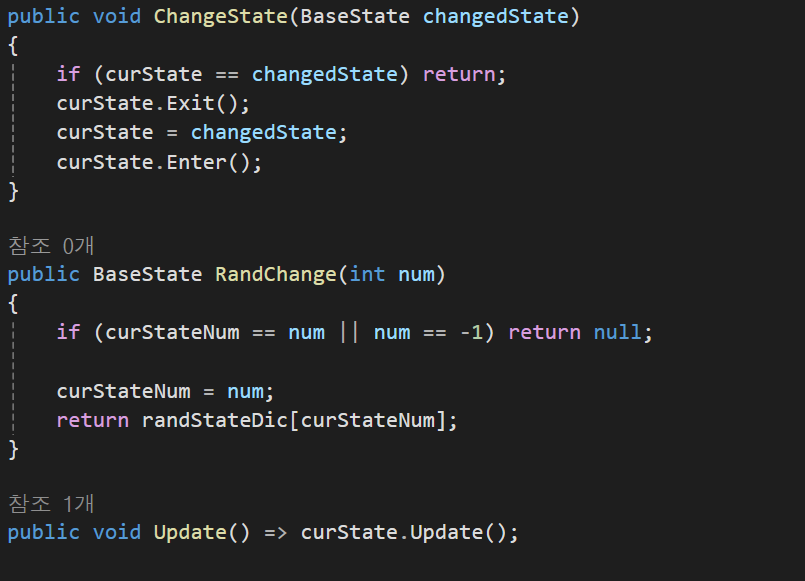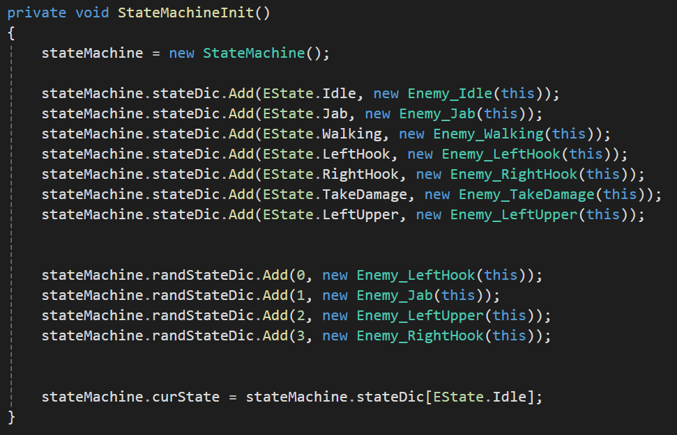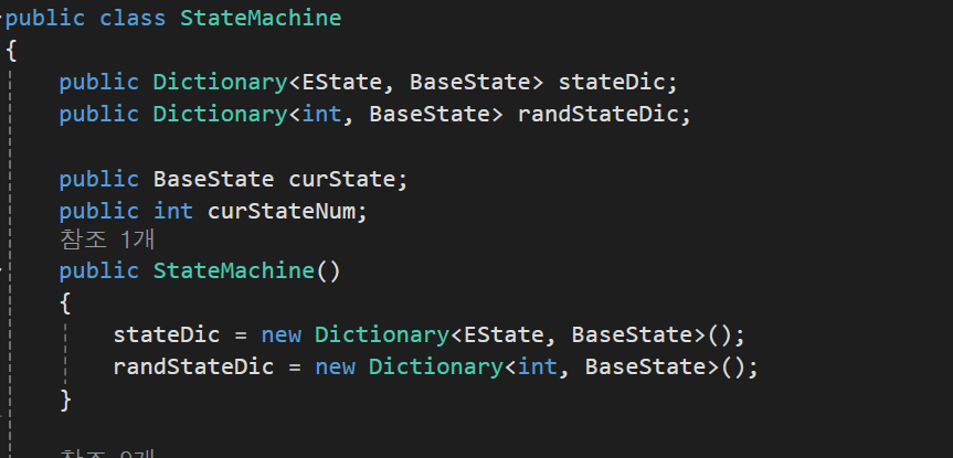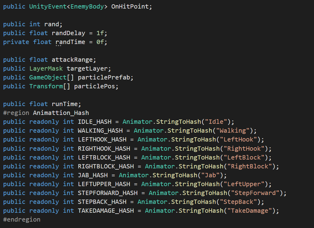 랜덤값을 통해 해당 애니메이션을 사용하도록 rand값을 넣어주었다(rand값을 통해 StateMachine에서 딕셔너리에 접근)