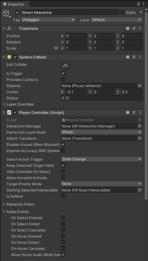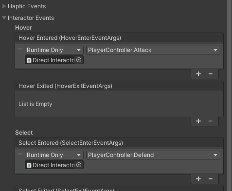 PlayerController) XRDirectInteractor를 상속받아 Hover와 버튼을 누를 시 Defend를 구현중