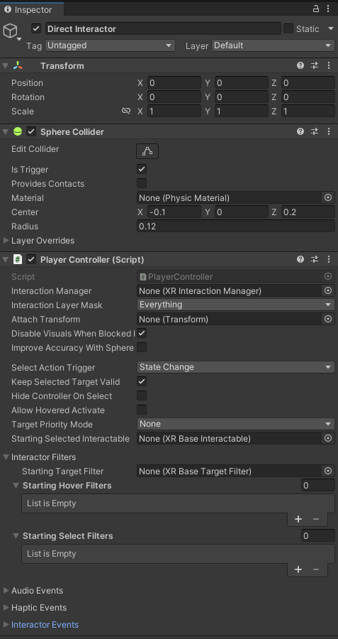 다음과 같이 Interactable Events를 살펴 보면 Hover Select Focus Active 이벤트가 있으므로 실행하고싶은 함수를 편하게 사용하면 된다.