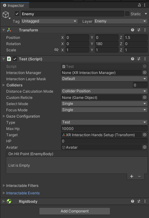 XR Simple Interactable을 상속받은 오브젝트 스크립트 Test라고 가정할 때