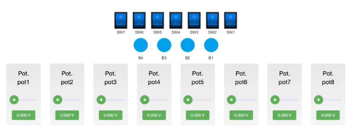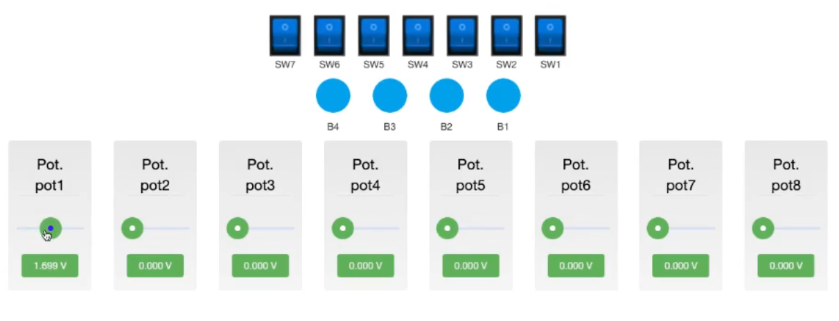 실습 장치에는 최대 8 개의 Potentiometer가 있어 동시에 8 개의 아날로그 입력을 읽을 수 있다. 다만, 모든 마이크로컨트롤러 핀이 ADC를 지원하는 것은 아니므로, 실제 회로를 구성할 때는 해당 핀이 ADC 입력을 지원하는지 반드시 확인해야 한다.