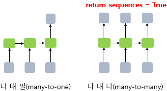 hidden_units: RNN의 출력의 크기(=은닉 상태의 크기)timesteps: 시점의 수(=각 문서에서의 단어 수)input_dim: 입력의 크기(=임베딩 벡터의 차원)⑤ RNN의 다 대 일(many-to-one) 문제