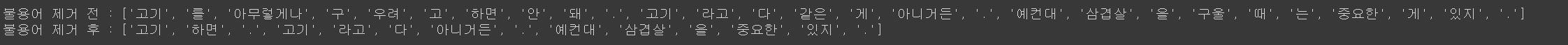 <python 코드: 한국어 불용어 제거>
